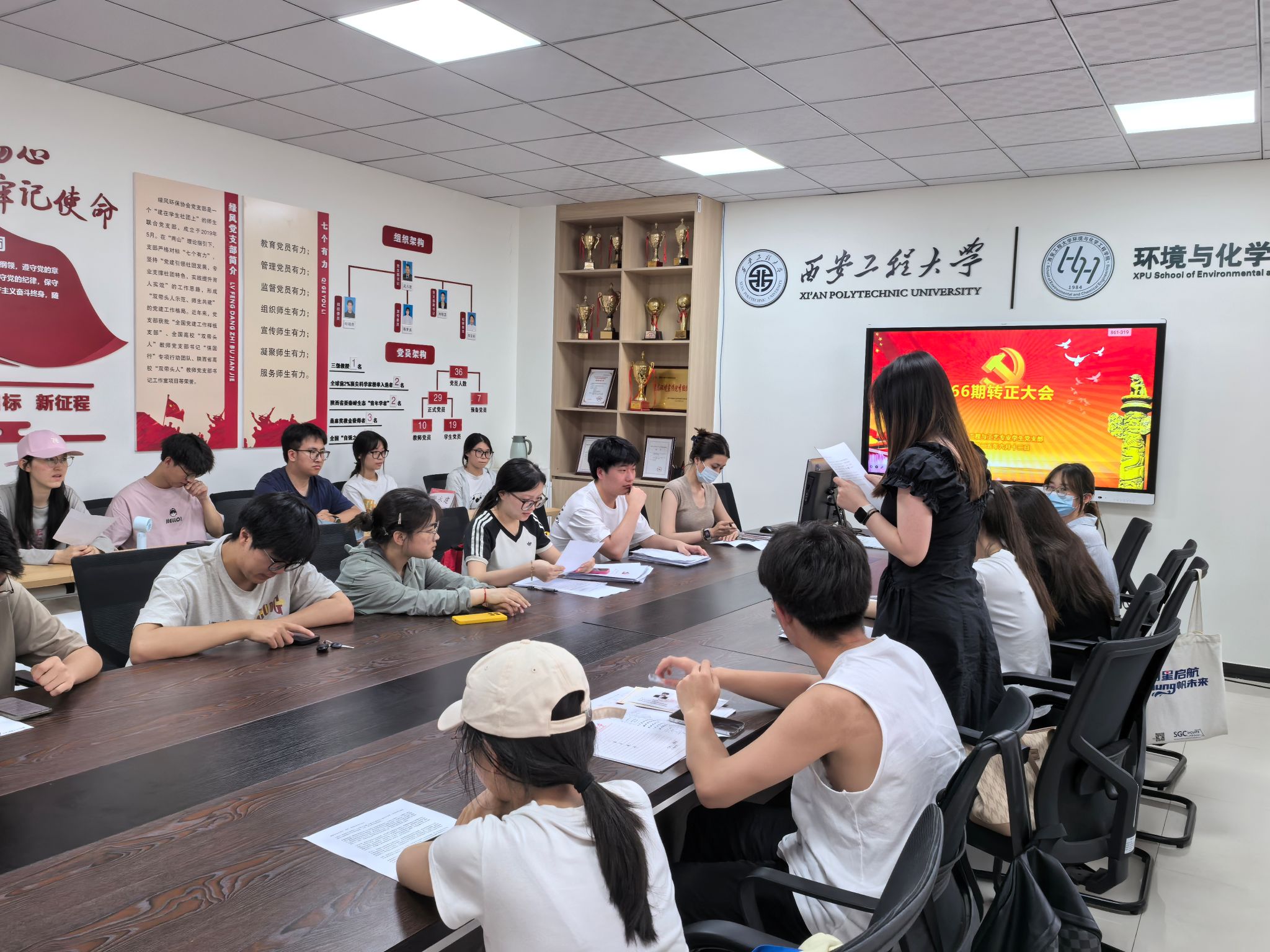 会上,盖潇宇介绍了本期转正对象和发展对象的基本情况,并对会议纪律、发言要求等事项作了说明。随后,六名发展对象宣读入党志愿书,四名预备党员宣读转正申请。入党介绍人分别介绍了各位同志的综合表现。经讨论和无记名投票,一致同意接收文永梅等六名同志为中共预备党员,批准杨雪妮等四名同志转为中共正式党员。