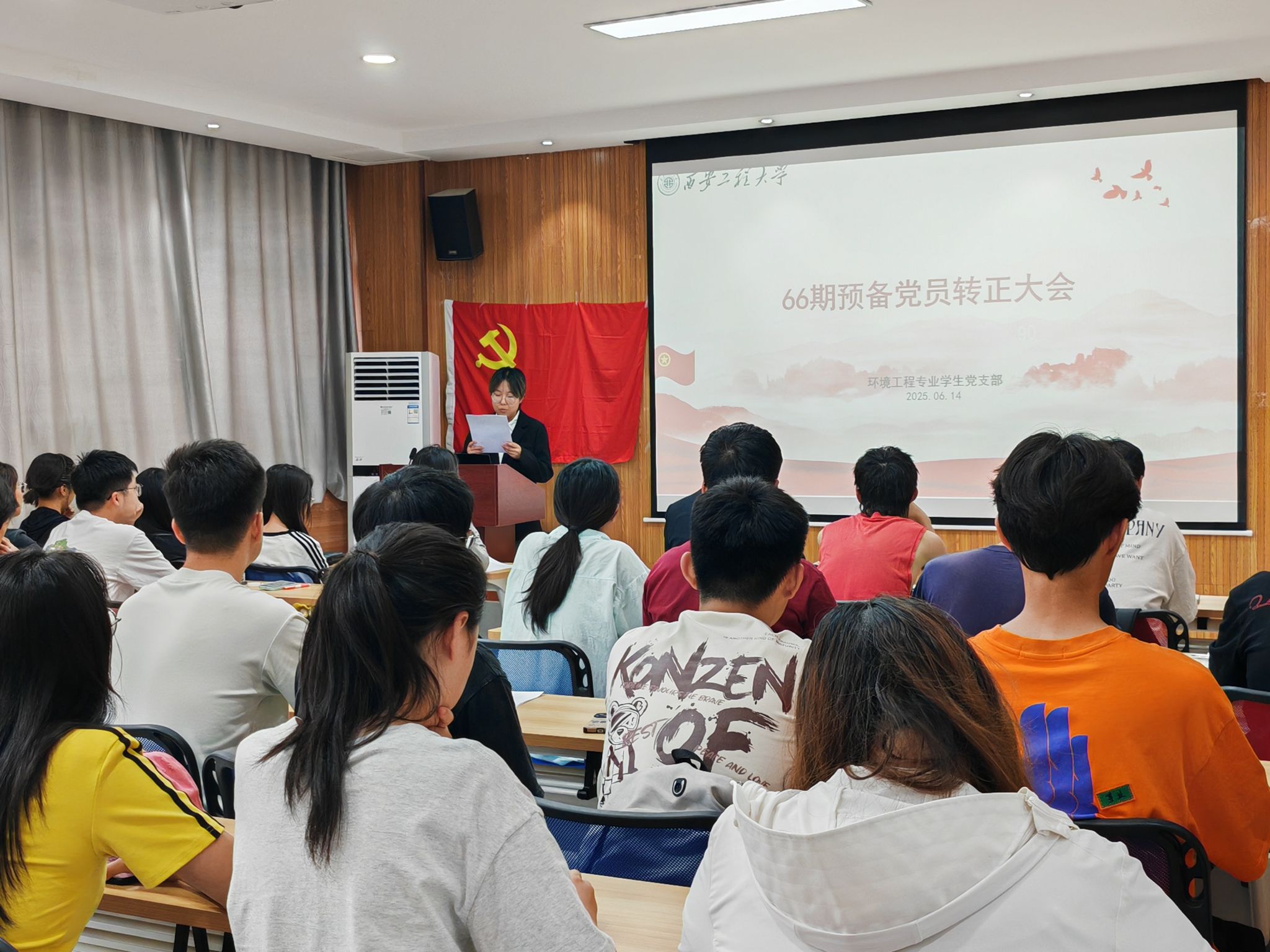 2025年6月14日,必赢626net入口首页环工专业学生党支部在环化楼507会议室召开预备党员接收及转正大会,讨论发展12名新党员及10名预备党员转正事宜。会议由党支部书记任子瑜主持,支部全体党员参加。