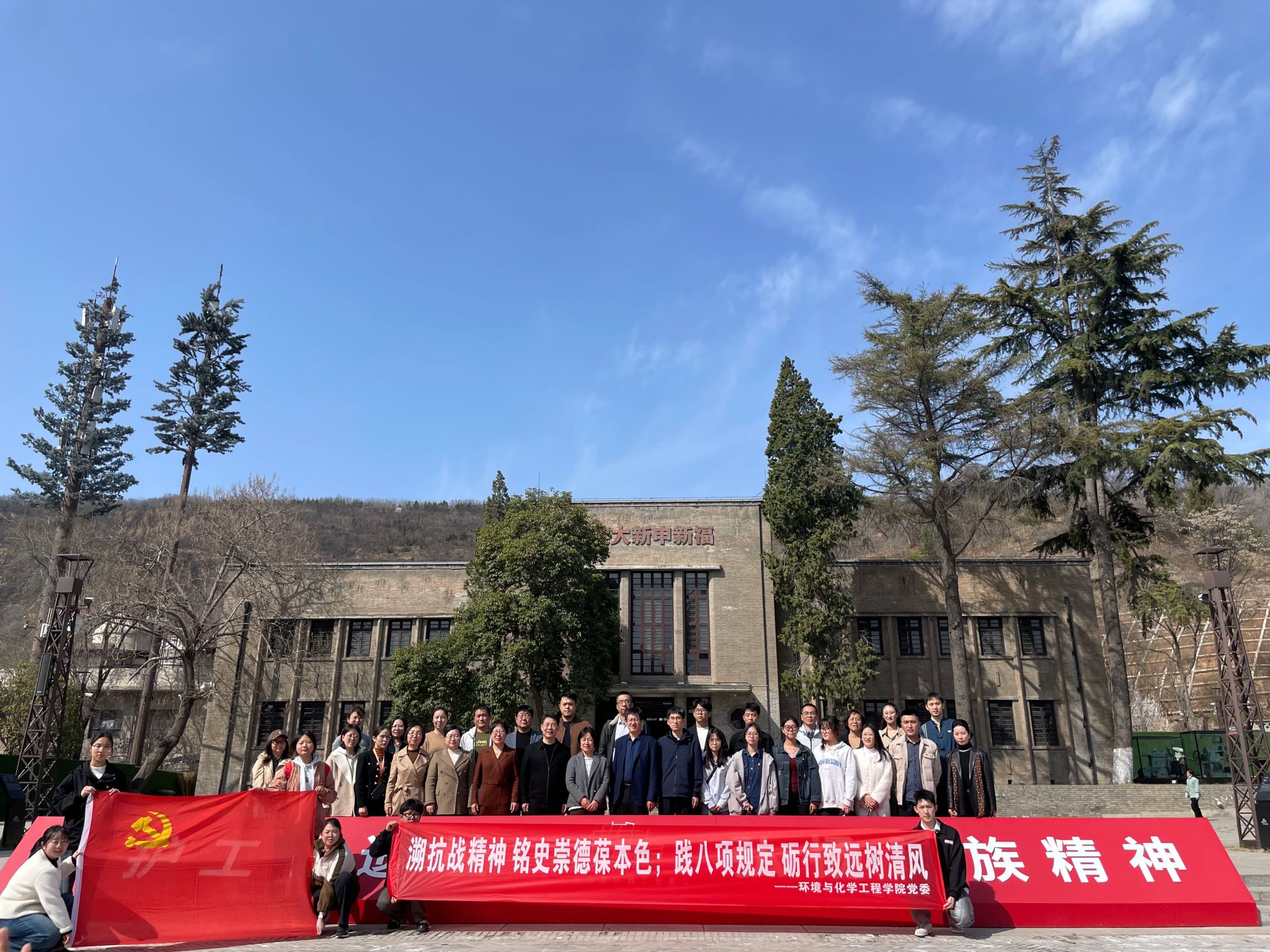 宝鸡青铜器博物院是中国最大且唯一的青铜器博物馆,集中收藏、研究和展示周秦时期青铜文化。宝鸡青铜器博物院拥有何尊、逨盘、秦公镈等藏品。走进博物馆,讲解员通过何尊铭文中最早的“中国”二字,为党员们打开了理解中华文明基因的密码。党员们依次参观了“青铜器之乡”“周礼之邦”“秦肇之路”“智慧之光”四个展厅,深刻体悟中国五千多年的文明史,文化认同的核心价值观在这一刻更加具象。时空转换中,党员们来到长乐塬抗战工业遗址公园,这里曾是宝鸡申新第四纺织厂所在地。抗战期间,窑洞工厂的正式运转,支撑了中国西北战区的棉纱供应,被林语堂称为“中国抗战中最伟大的奇迹”。学院师生党员有序参观了申福新办公大楼、窑洞车间、乐农别墅、薄壳车间以及内迁工业史展厅,通过近距离端详历史实物、图片、文献资料,详细了解纱厂内迁的时代背景,感受中国工人阶级在抗战时期的爱国精神和奉献精神。活动结束后,环境工程系教工党支部书记于翔表示:“博物馆内这些承载着‘何以中国’答案的国之重器,让我更加读懂了文化自信的深刻内涵。”绿风环保协会党支部党员叶周曹说:“参观长乐塬抗战工业遗址公园,深刻感受到了前辈们为了国家独立和民族解放所付出的巨大牺牲和努力。我将把这种精神传承到我的学习和生活中,不负先辈期望,争做有为青年。”