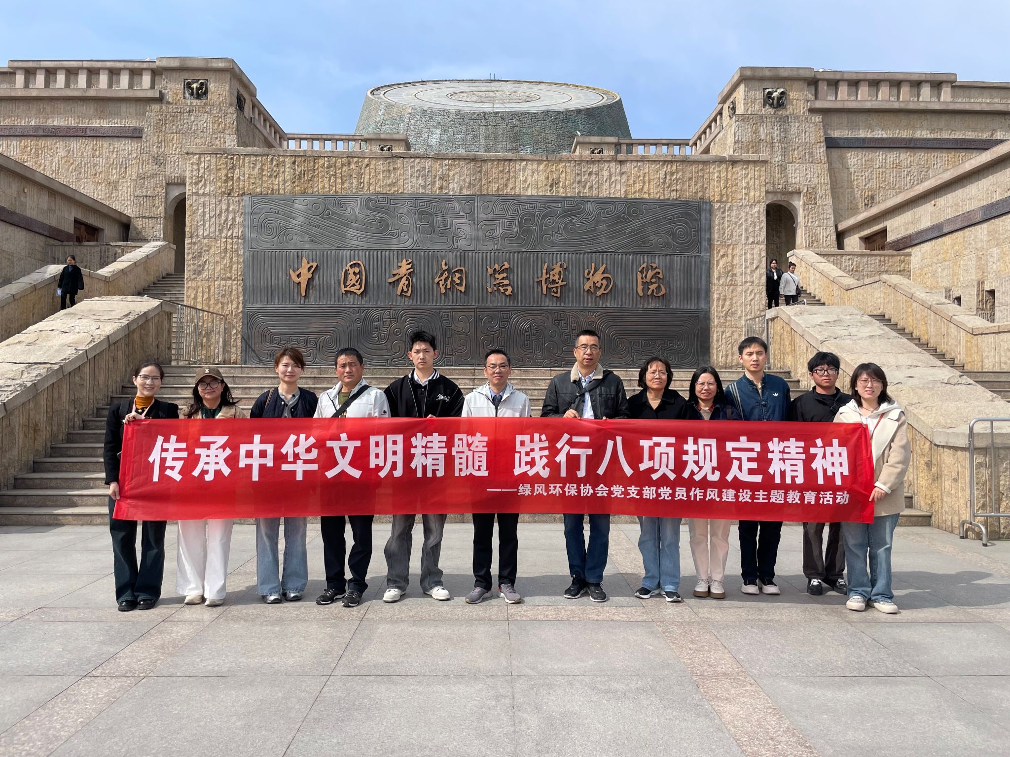 为深入学习贯彻习近平文化思想、习近平总书记关于文物保护和文化传承的重要论述,深入贯彻中央八项规定精神学习教育,弘扬党的优良传统,激发党员干部立足岗位建功立业的热情,我院党委于3月21日组织党员干部赴宝鸡开展主题为“溯青铜文明之源,铸红色精神之魂”的主题党日活动。