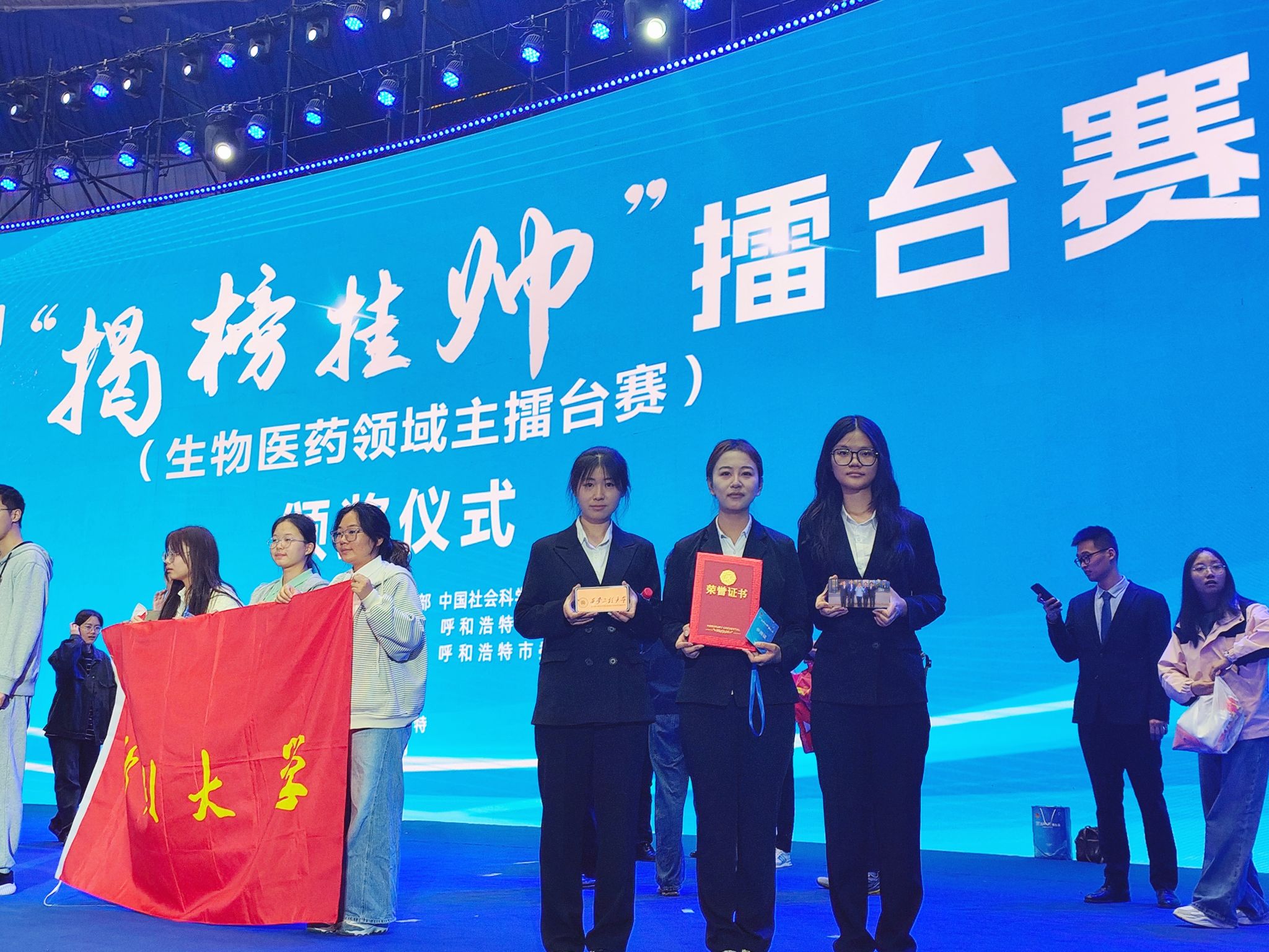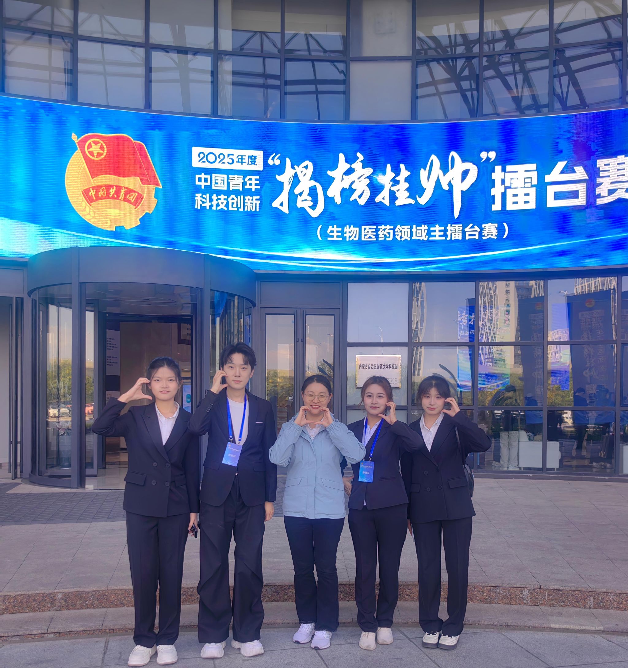 2025年9月27日至29日,中国青年科技创新“揭榜挂帅”擂台赛“生物医药领域”主擂台赛在呼和浩特敕勒川国际会议中心圆满落幕。由我院何艳慧老师指导,张悦曼等6名学生组成的“糖衣炮弹”团队,凭借“壳聚糖纳米外衣-高载的药剂导航系统”项目,在“抗肿瘤中成药治疗应用研究”赛道中脱颖而出,荣获全国三等奖。这是我院首次在挑战杯“揭榜挂帅”专项赛中获奖。