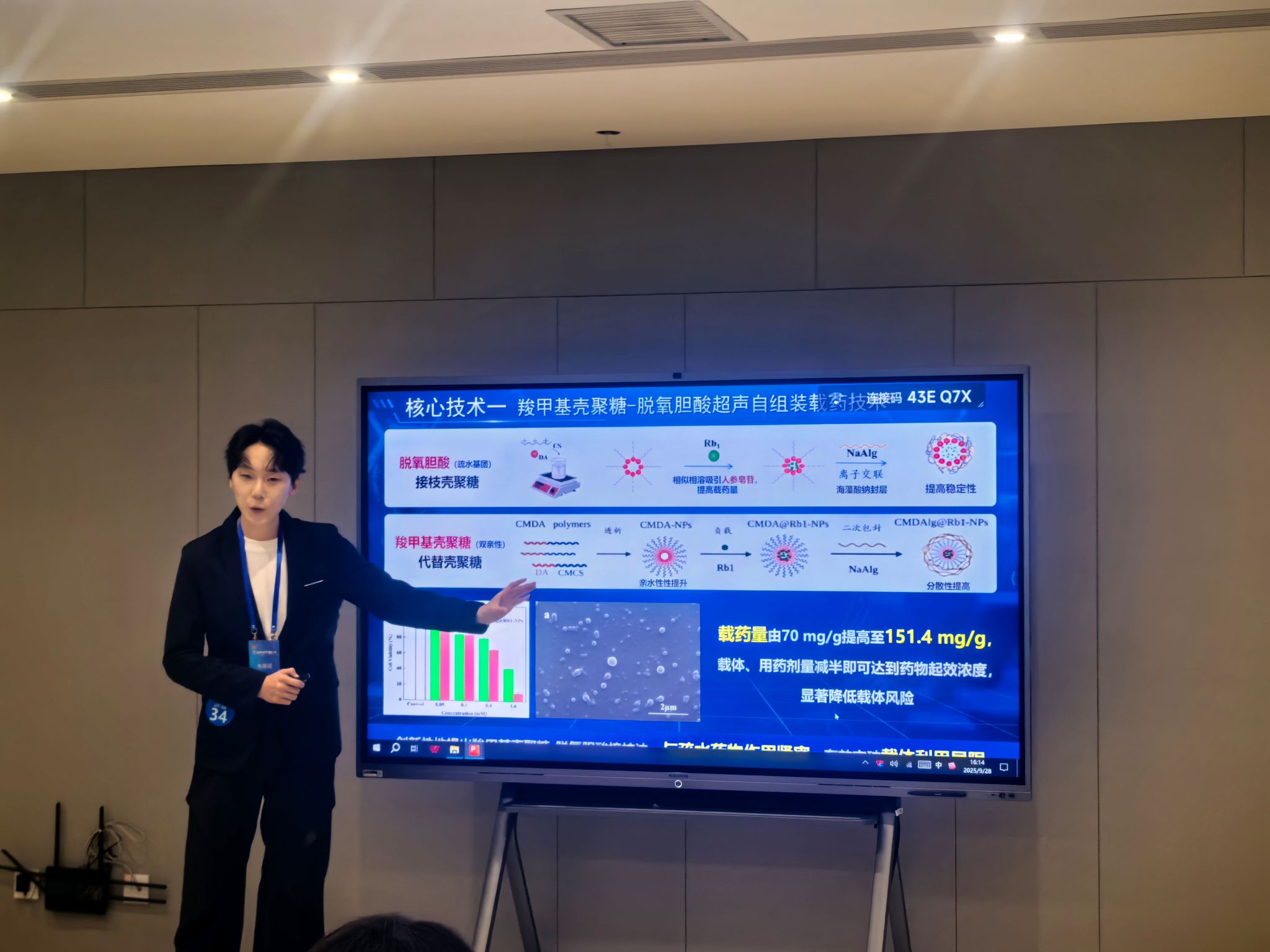 “糖衣炮弹”团队针对肿瘤治疗中药物靶向性差、负载效率低等难题,构建了一套基于壳聚糖纳米外衣的创新载药系统。该系统显著提升人参皂苷等天然药物的负载效率,并利用叶酸接枝技术,实现药物的精准导航与可控释放,为肿瘤靶向治疗提供了新思路。