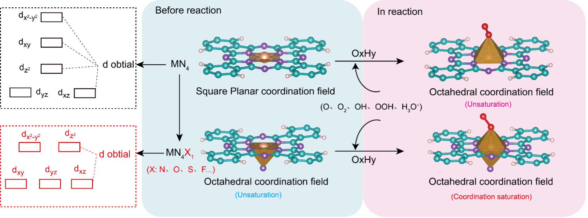 近日,我院武占省教授团队在国际知名期刊Chemical Engineering Journal(SCI一区,IF=15.1)上发表题为“Tuning the coordination field configuration on well-definedmolecular catalysts for boosting bifunctional oxygenelectrocatalytic”的研究型文章。作者通过一种非热解策略在铁基共轭酞菁框架(Fe-CPF)上构建轴向配位,得到具有明确Fe-N5活性中心的双功能氧电催化剂。实验研究和理论计算表明,轴向相互作用可使局部晶体场和自旋极化变化,即由中自旋态的平面配位(Fe-N4SP)向低自旋态的准八面体配位(Fe-N5OCquasi)转变。dz2、dxz和dyz轨道中自旋向上和自旋向下的电子数趋于一致,自旋极化的局域对称性可以使含氧反应中间体产生适中的吸附/解吸能,从而增强了本征反应活性。结果表明Fe-CPF@Ip-RGO表现出了优异的双功能氧催化活性(ΔE[Ej10-E1/2] = 0.567 V),超过了基准Pt/C-IrO2。这项工作为通过调控金属活性中心的d-轨道能级分裂形式用于提高氧电催化性能提供了新的理解。