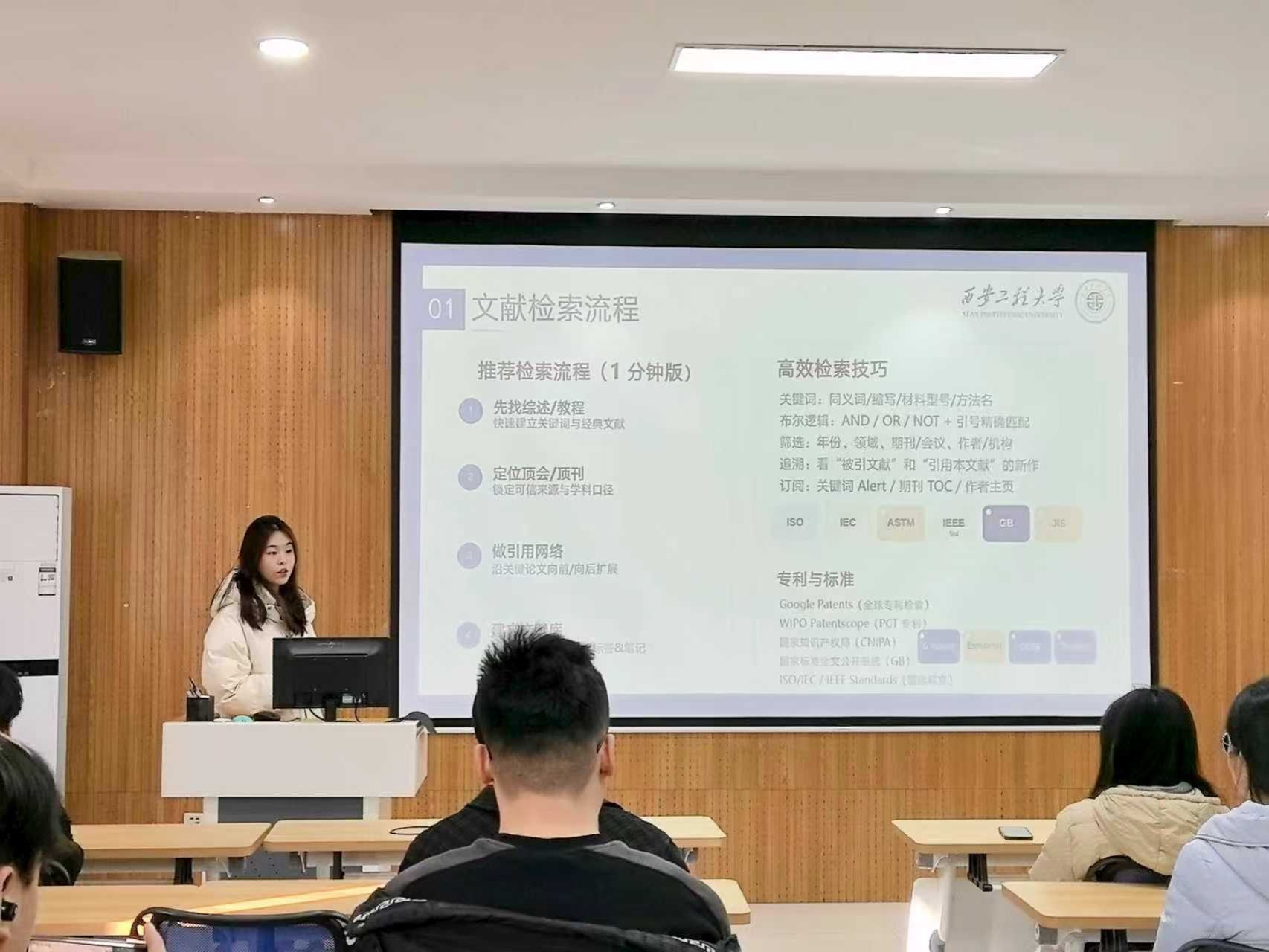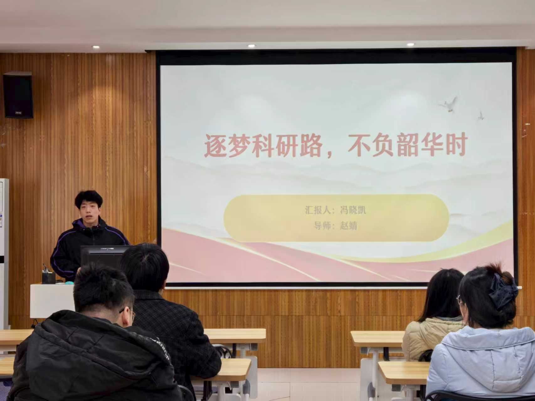 在分享环节中,薛玉香从文献检索入手,系统介绍了常用学术网站与工具,并结合自身科研实践,讲解了如何高效获取与整理文献。林川则从科研与竞赛双重角度展开,以生动比喻拆解论文写作逻辑,并分享了参与学科竞赛的实战经验。他强调,项目选题应紧扣国家战略与热点,团队分工需明确,答辩呈现要逻辑清晰、简明有力。冯晓凯按研究生学习阶段展开分析:研一应夯实基础、广泛阅读、确定方向;研二则需注重“小目标”积累,逐步突破科研瓶颈,同时通过有效沟通推动课题进展。
