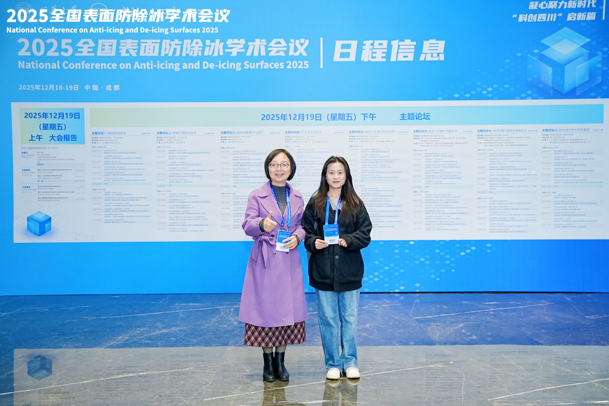 2025年12月18日至19日,我院赵亚梅教授及其研究生刘俊均参加西华大学联合多所高等院校在四川成都举办的2025全国表面防除冰学术会议。会议邀请防除冰领域国内外知名专家学者,面向世界科技前沿、国家重大需求、国民经济主战场,聚焦超疏水材料、仿生防冰、微纳制造、航空航海防除冰等前沿方向,紧扣表面防除冰机理、超滑表面技术、新材料研发、工程应用等主题,探讨新时代科技体系的重大理论、关键技术与基础方法。